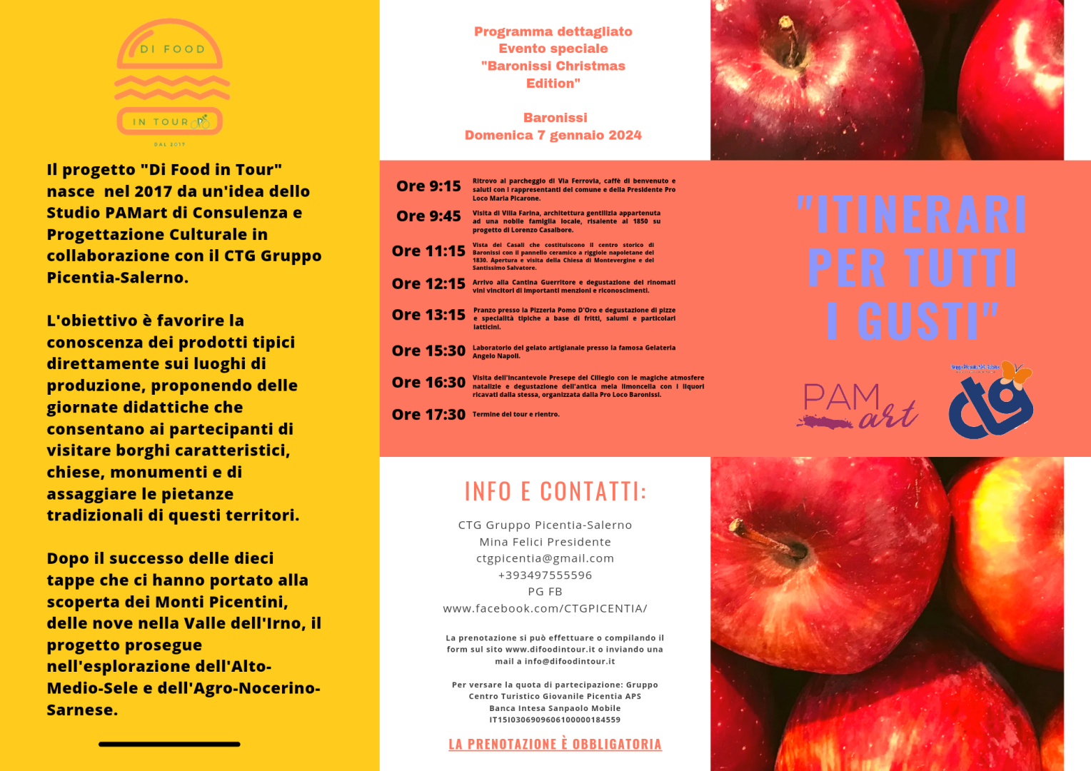 Per garantirsi la prenotazione, tassativamente entro venerdì 5 Gennaio 2024 attraverso il sito www.difoodintour.it, bisogna compilare l’apposito modulo allegato in questa pagina ed inviarlo.