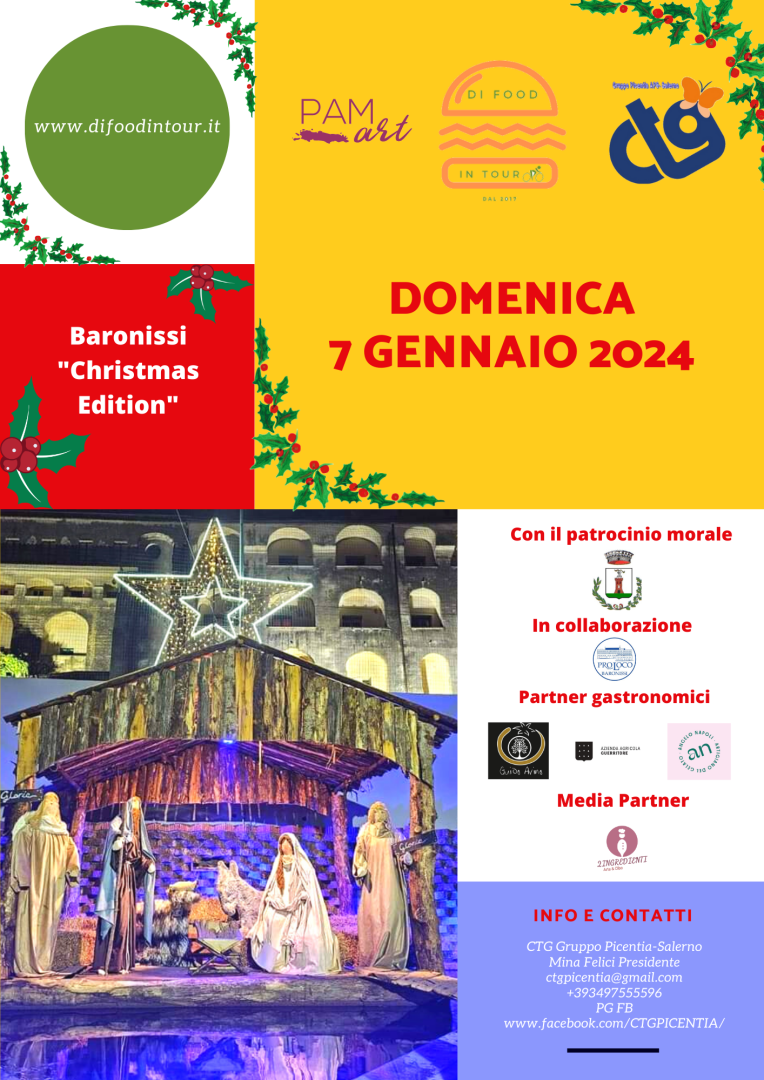 - 02-01-2024 CILENTONOTIZIE: CHRISTMAS EDITION DI 'DI FOOD IN TOUR' A BARONISSI: CULTURA, ENOGASTRONOMIA E TRADIZIONI