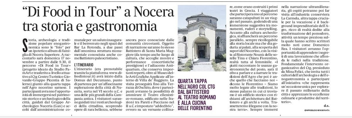 - 17-11-2024 IL MATTINO SALERNO (ed. cartacea): "DI FOOD IN TOUR" A NOCERA TRA STORIA ED ENOGASTRONOMIA